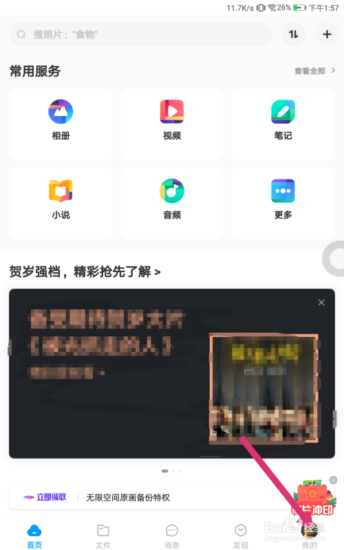第二步,在百度网盘本家儿页面找到“我的”,即页面最下面一排右边图标。