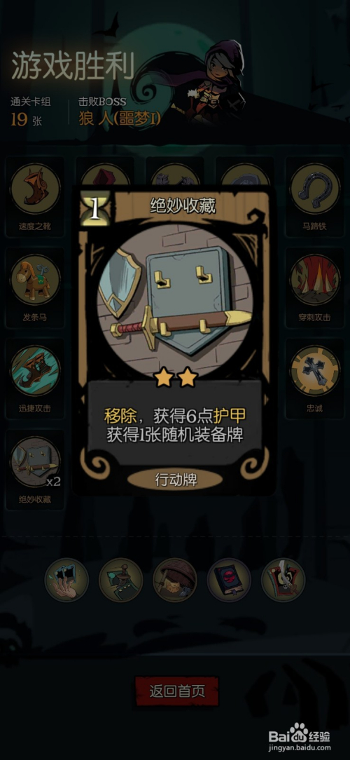 绝妙保藏:获得6护甲,获得1张随机装备牌。