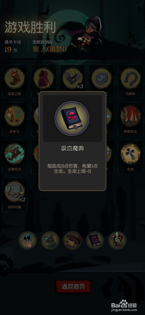 吸血魔典:每造当作5点危险,答复1点生命,生命上限-5.用这个或者带一把吸血鬼剑,就可以无限续航。容错率低良多良多。