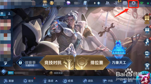 更新完当作之后,登录进入游戏界面,在游戏界面点击右上角“设置”选项。如图所示