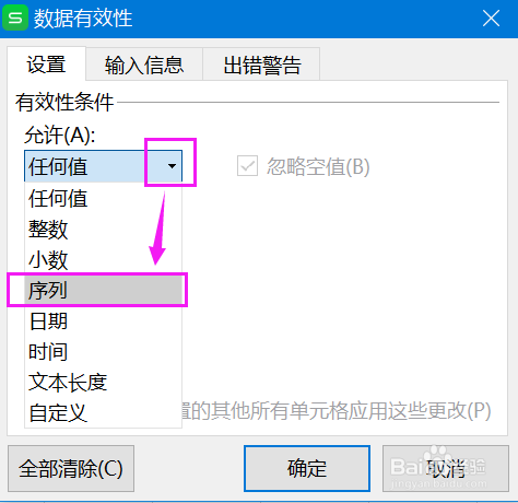 在弹出的“数据有用性”设置 页面中,在“许可”下方的下拉菜单中,选择【序列】。