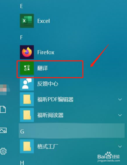 找到翻译软件,右键点击翻译图标。