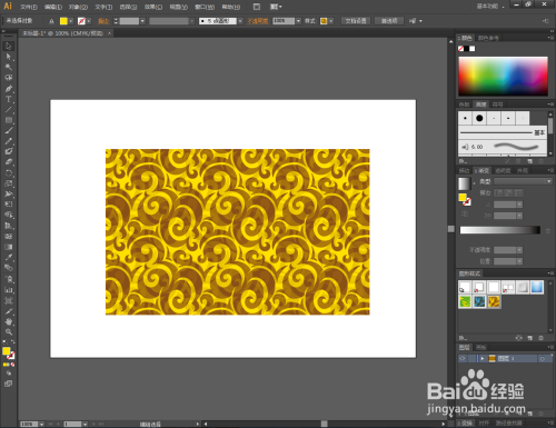 选中矩形图案,将黄底祥云图样附加上去即可。