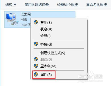 右键菜单以太网适配器选择属性选项进入。