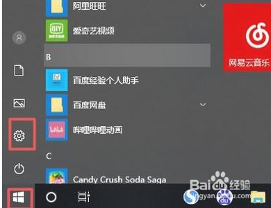 在win10操作系统桌面上,点击左下角起头按钮选项windows设置选项进入。