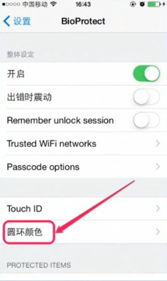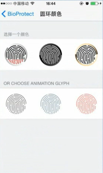 - 5点击进入,可以按照本身的爱好选择touchid圆环颜色。