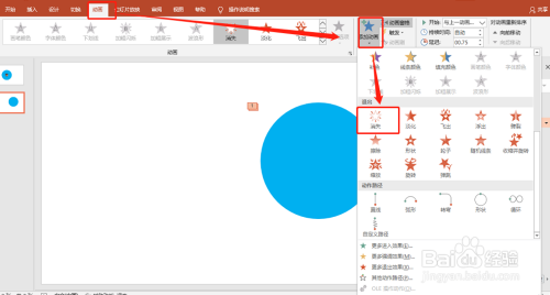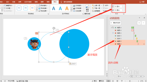 再插入一个圆,无填充,并添加两个动画。如图: