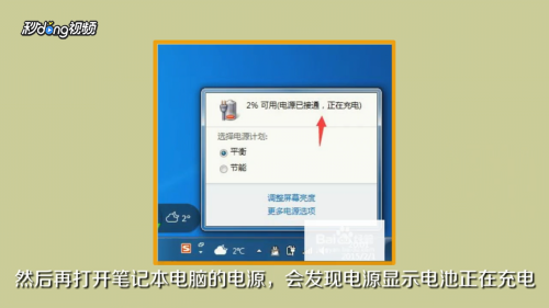 - 6重启笔记本电脑,打开“电源”,发现正在充电。