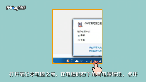 - 1打开笔记本电脑,点开“电源标注”。