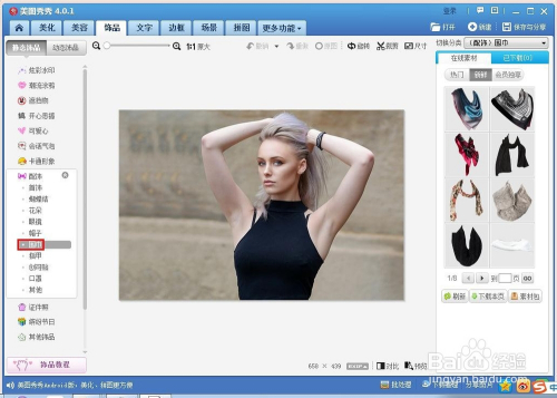 第三步:单击选择美图秀秀软件菜单栏中的“饰品”选项。