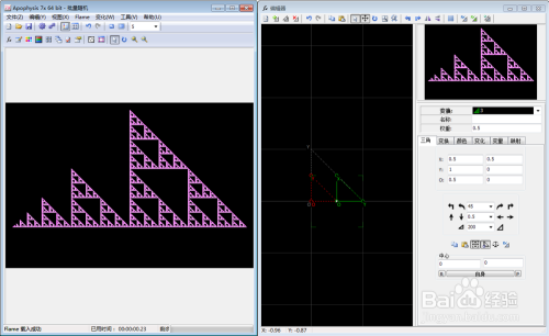 复制三角形1,获得三角形2,把三角形2右移0.5个单元: