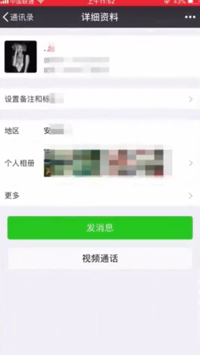 - 2点击进入老友的“具体资料”界面,在这里可以看到老友的具体资料。