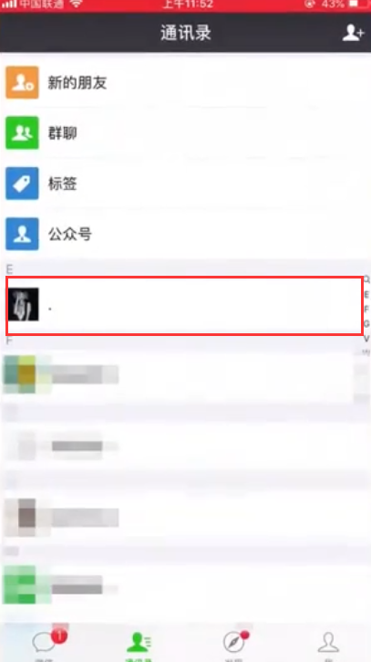 - 1首先打开手机微信,进入到通信录界面,选择一个通信录老友。