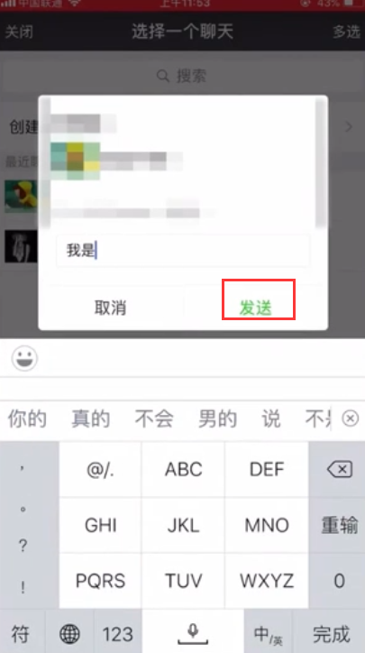 - 5跳转页面之后,再选择一个接收手刺的“老友”并点击。