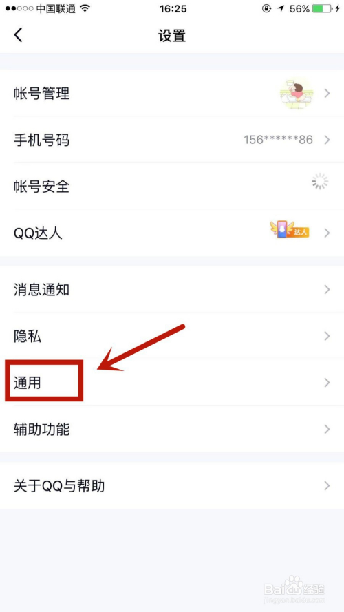 在设置页面,点击进入通用选项。