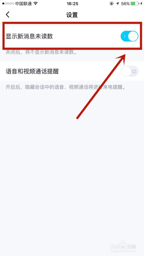 3.将显示新动静未读数后的按钮点击打开,即可。