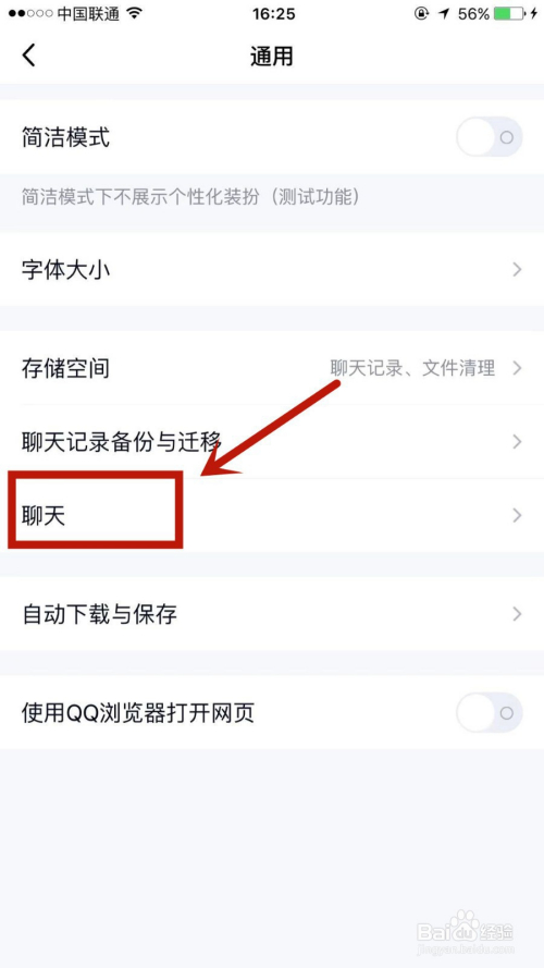 在通用页面,点击进入聊天选项。
