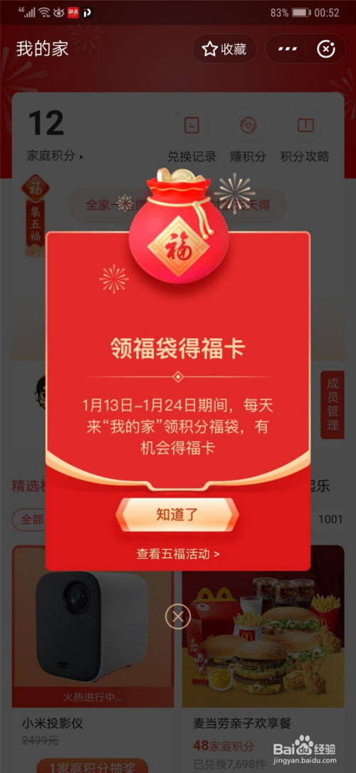 经由过程家园的积分领取,我们天天可以获得1次福卡的机遇。