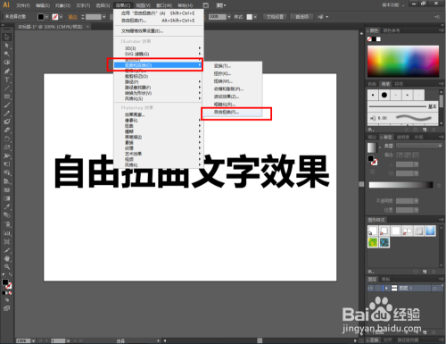 点击【文字东西】,在“自由扭曲文字结果”的文字建造;