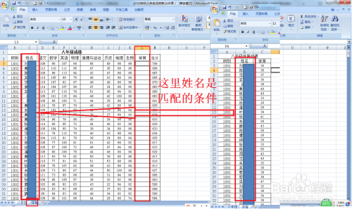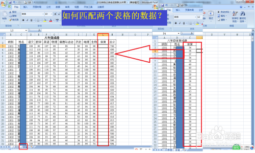 如何匹配两个表格的数据: