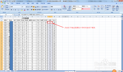 如图所示,在一张测验的工作薄中有一个汇总的成就表,笔试成就已经清算好,而还需要录入体育教员供给的体育成就。