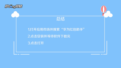 - 5打开应用市场并搜刮华为红包助手;点击安装并期待软件下载完;点击打开。