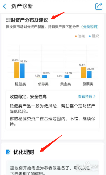 - 按照系统的理财建议,可以优化本身的理财布局。