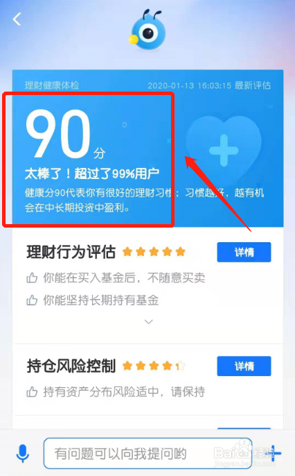 理财体检分数显示出来了。