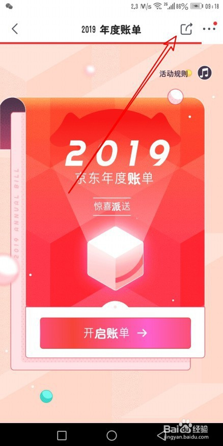 5、在打开的年度账单页面中,点击右上角的分享按钮。
