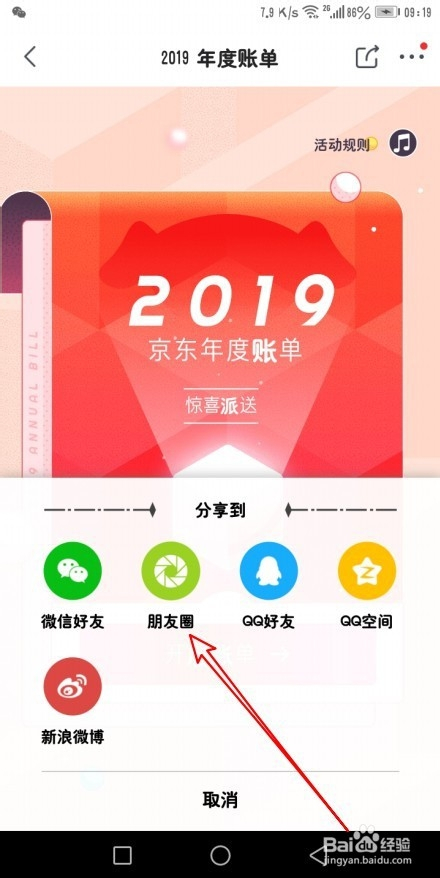接下来在弹出的菜单中选择朋友圈的图标就可以了。
