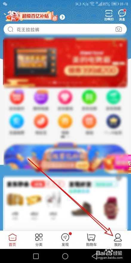 2、在打开的京东软件本家儿界面点击右下角我的选项卡。