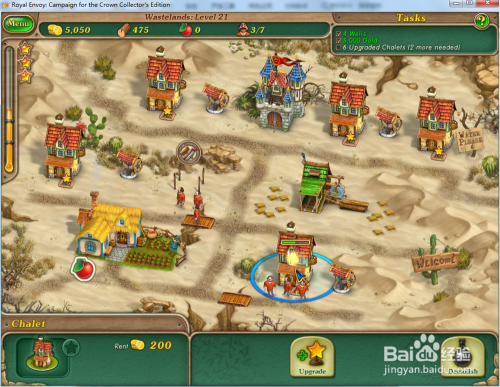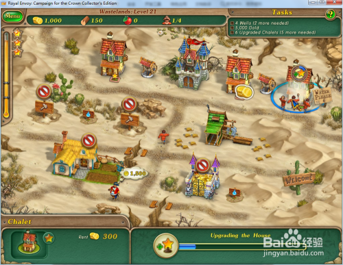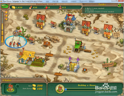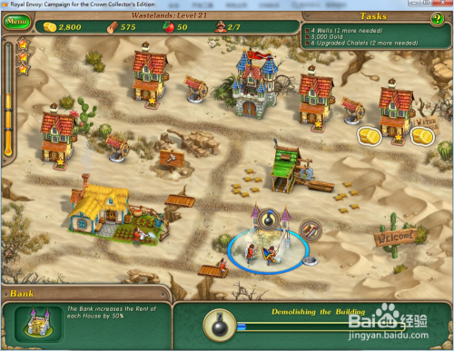 将下方的银行拆除,然后建造并进级一座小屋,这样我们就有6座小屋,本关的使命就完当作了。