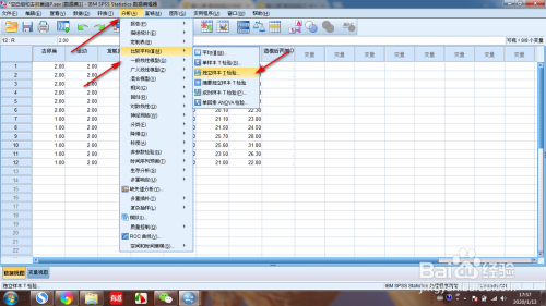 首先打开SPSS,录入数据后,单击菜单栏的阐发,选择比力平均值,单击自力样本T查验