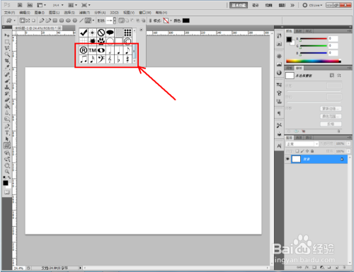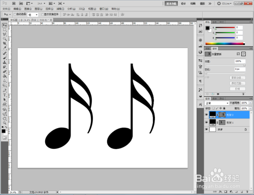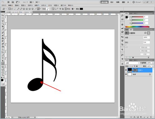 选择外形选项栏中的十六分音符图案,绘制出十六分音符图案;