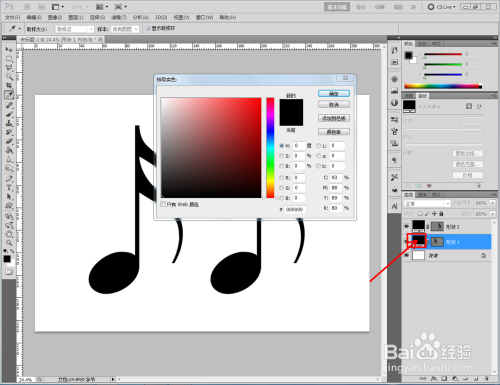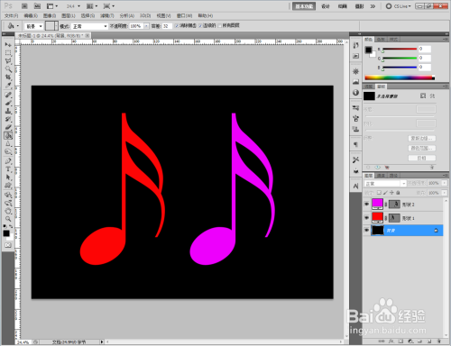 双击十六分音符图案图层前面的色块,给图案设置分歧的颜色即可。