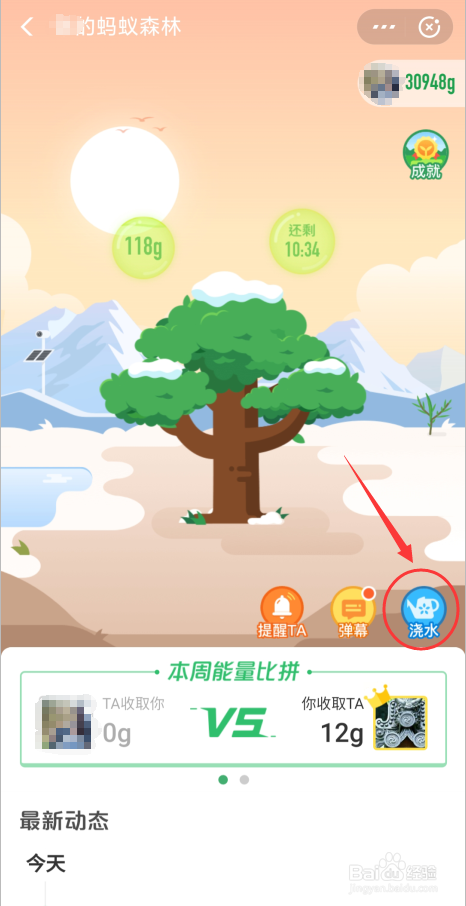 在老友的蚂蚁丛林里,点击“浇水”。见下图