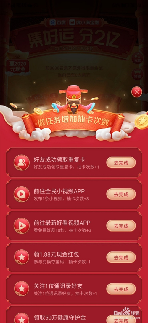 2.进入好运中国年活动,做使命获得次数。