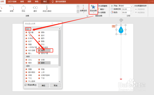 选中水滴,打开动画。如图: