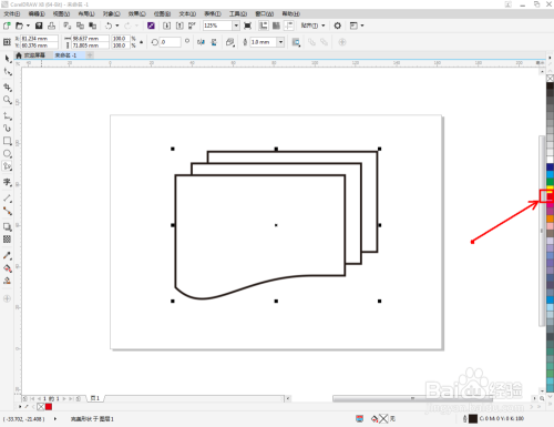 选中多层吊旗图案,鼠标右键点击右边色板的中色块,将多层吊旗图案设置为我们需要的颜色即可。
