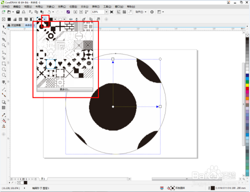 点击【交互式填充东西】-【双色图样填充】,点击【填充遴选器】,弹出填充遴选设置栏;