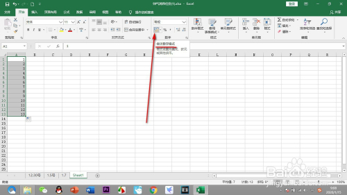 4.其实我们在起头选项卡的数字栏中可以找到一个添加货泉符号的按钮。