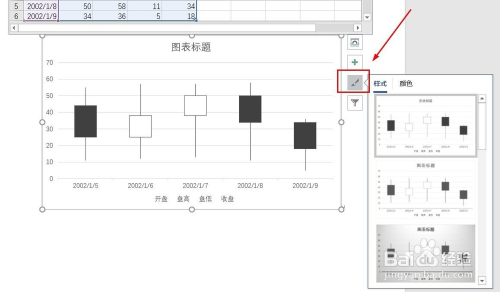7、点击“毛刷”图标,可更改“图表样式”。