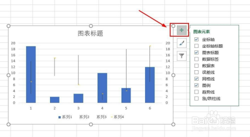 6、点击右侧“+”号图标,可添加“图表元素”。