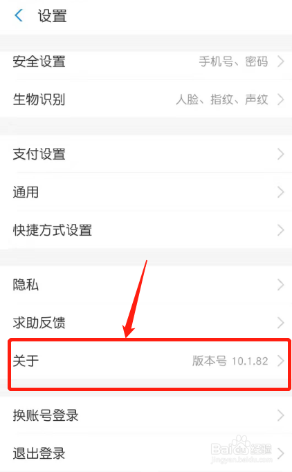 设置页面内,点击“关于”。