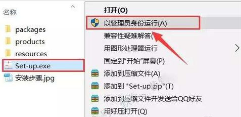 选中【Set-up】可执行文件,鼠标右击选择【以办理员身份运行】。