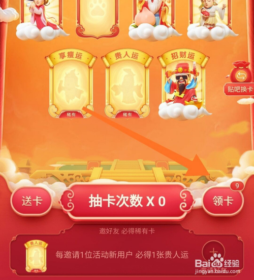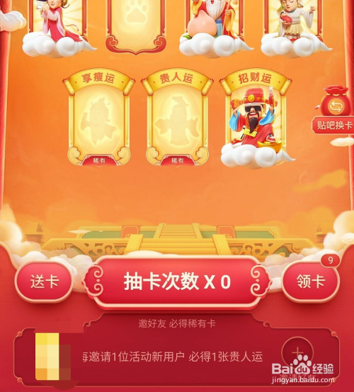 然后我们点击下方的邀请老友;邀请当作功之后了,就会有一张贵人运;