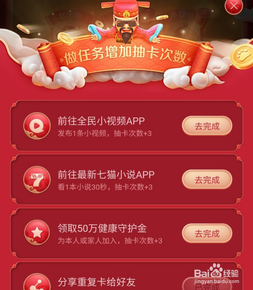 然后我们将相关的使命都做满,增添抽卡次数,这样获得罕见运机遇就大一些,本人获得了一张;