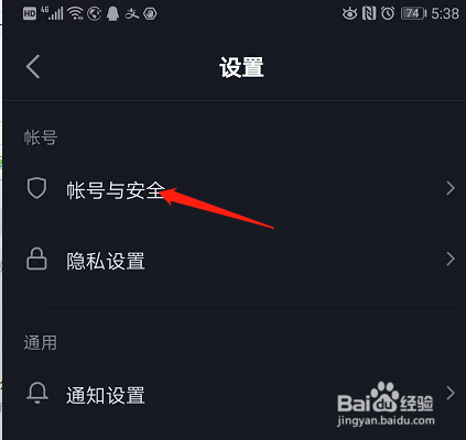 点击“账户与平安”选项,如下图位置。