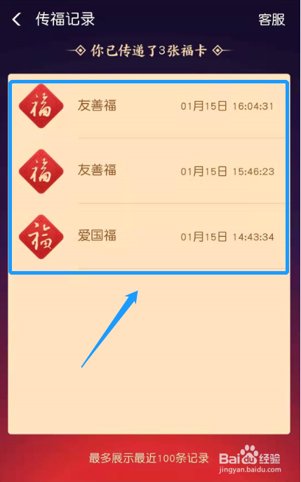 已传递的福卡记实就显示出来了。