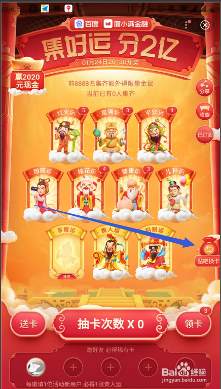 第2步进入活动后,可以在活动的首页中找到最右边的贴吧换卡的功能图标,这里点击该功能图标。